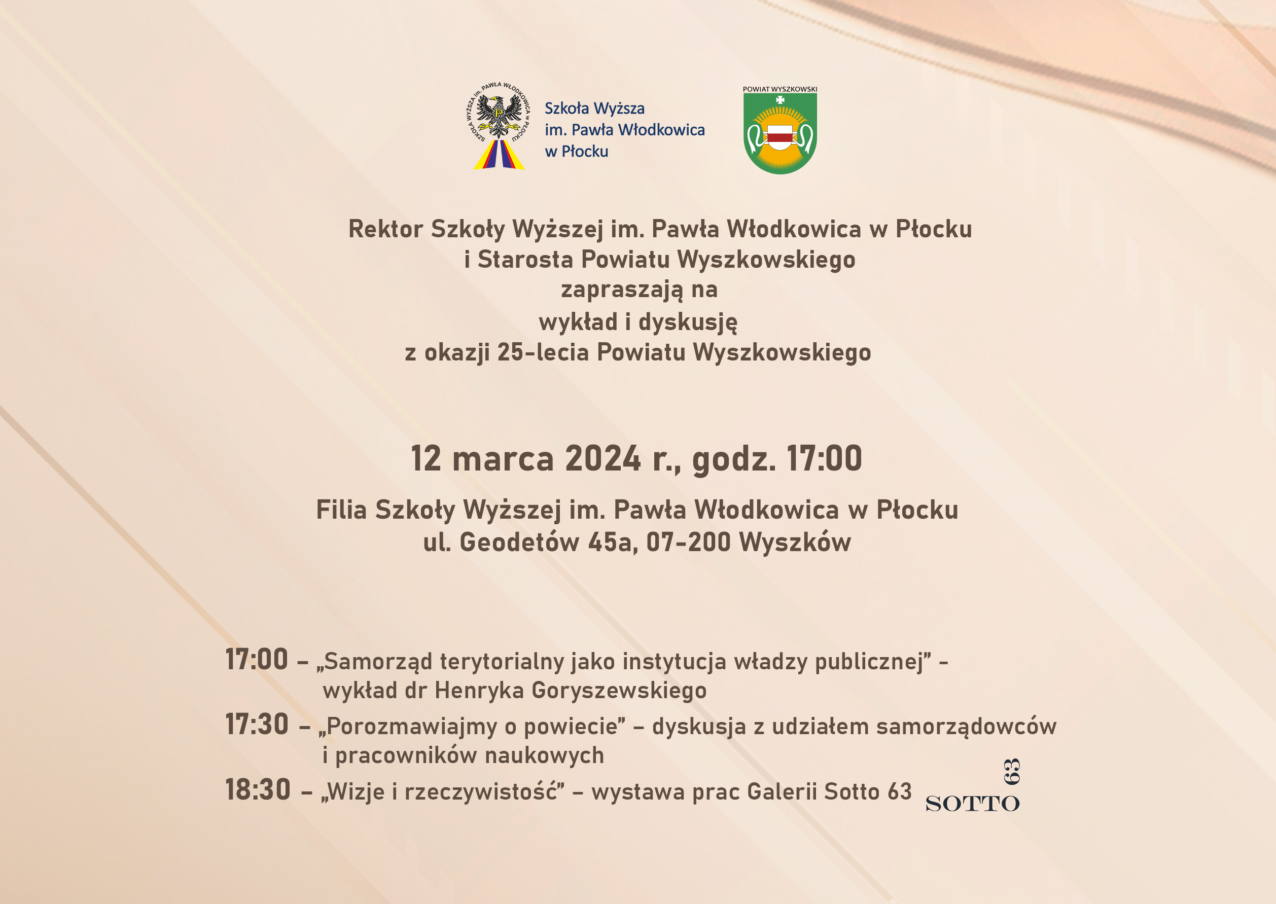 Rektor Szkoły Wyższej im. Pawła Włodkowica w Płocku i Starosta Powiatu Wyszkowskiego zapraszają na wykład i dyskusję z okazji 25-lecia Powiatu Wyszkowskiego.